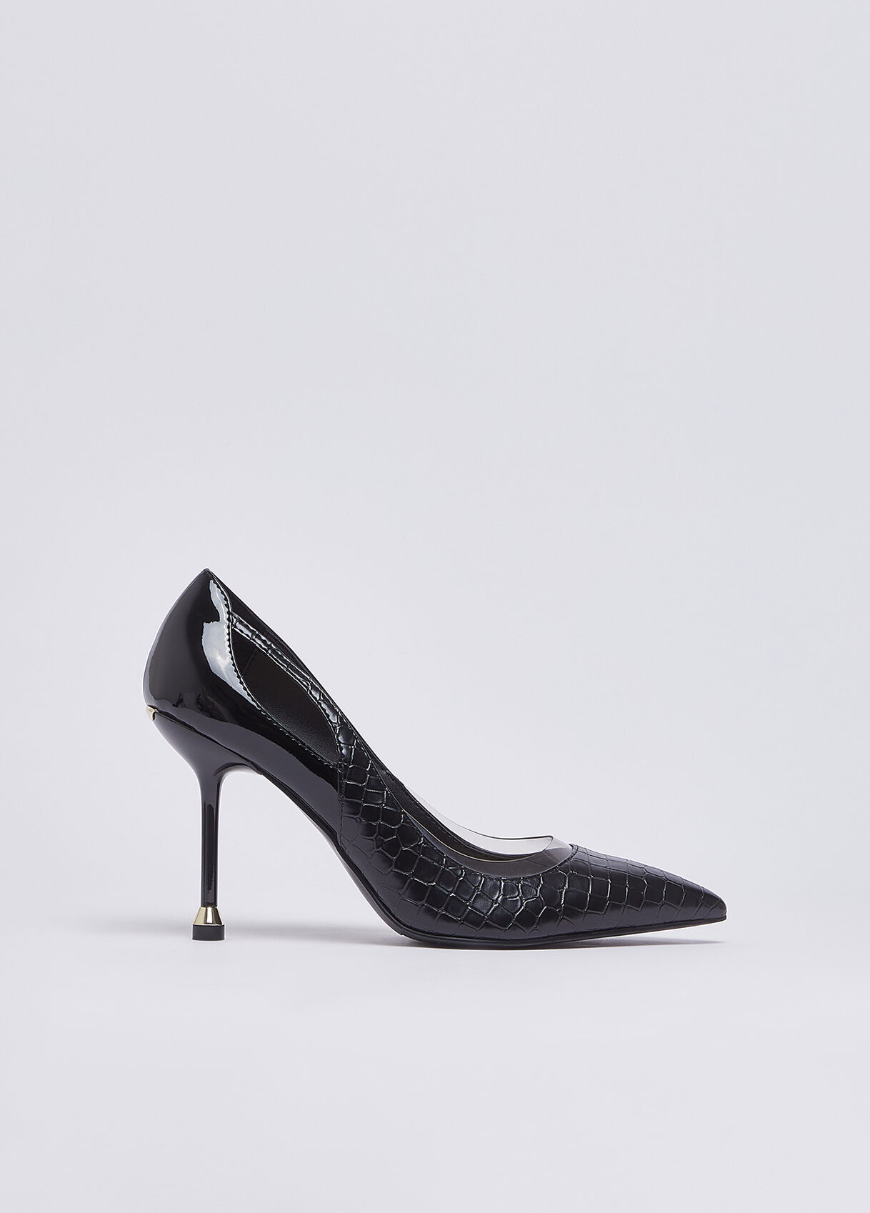 • Rugan deri üst parmak sahibi stiletto ayakkabı