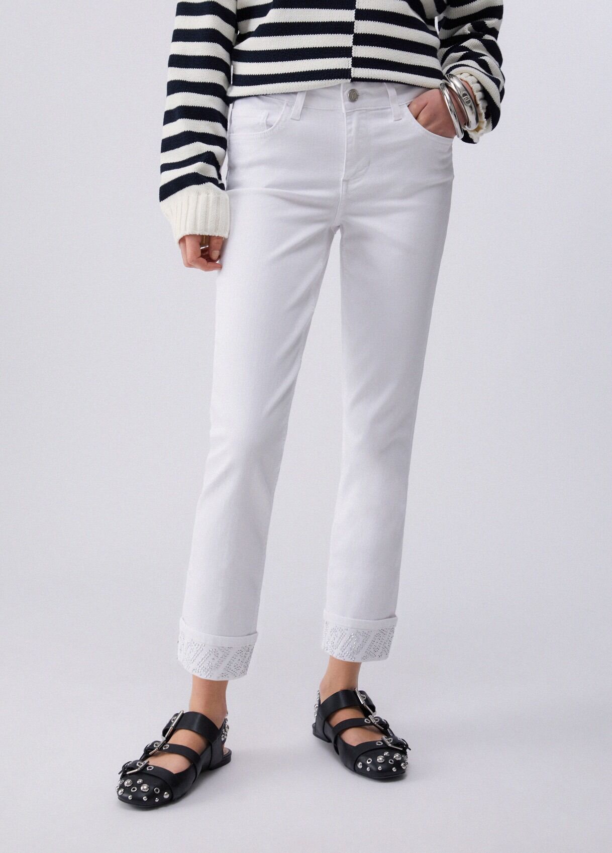 Beyaz Taş Detaylı Skinny Kadın Denim Pantolon